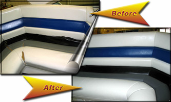 The upholstery and canvas reconstruction of this 1989, 29 foot Formula is the work of Natalie Kraft, owner of Two Rivers Canvas, Prescott, Wisconsin. The pictures show her use of the Micro tool to attach zippers to plastic during the pattern making process. Using this method will ensure a perfect fit when the strata glass or isinglass is cut, and will prevent scratches to the glass that often occur while cutting and fitting the actual product on site. |