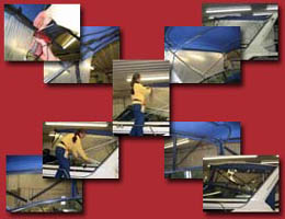 The upholstery and canvas reconstruction of this 1989, 29 foot Formula is the work of Natalie Kraft, owner of Two Rivers Canvas, Prescott, Wisconsin. The pictures show her use of the Micro tool to attach zippers to plastic during the pattern making process. Using this method will ensure a perfect fit when the strata glass or isinglass is cut, and will prevent scratches to the glass that often occur while cutting and fitting the actual product on site. |