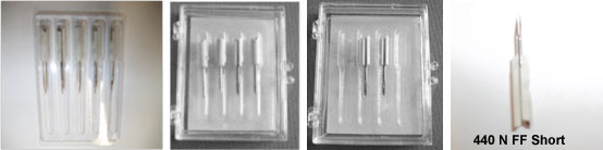 These needles are stronger and a bit longer than the standard FF needles. The steel needles are not recommended for very fine fabrics.